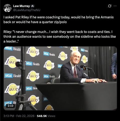 Today’s blog is in response to a recent Q&A with legendary NBA coach (and Heat GM) Pat Riley, where he was asked whether, if coaching today, he would bring the Armani suits back to the sideline or opt for the now common quarter-zip/polo look.
