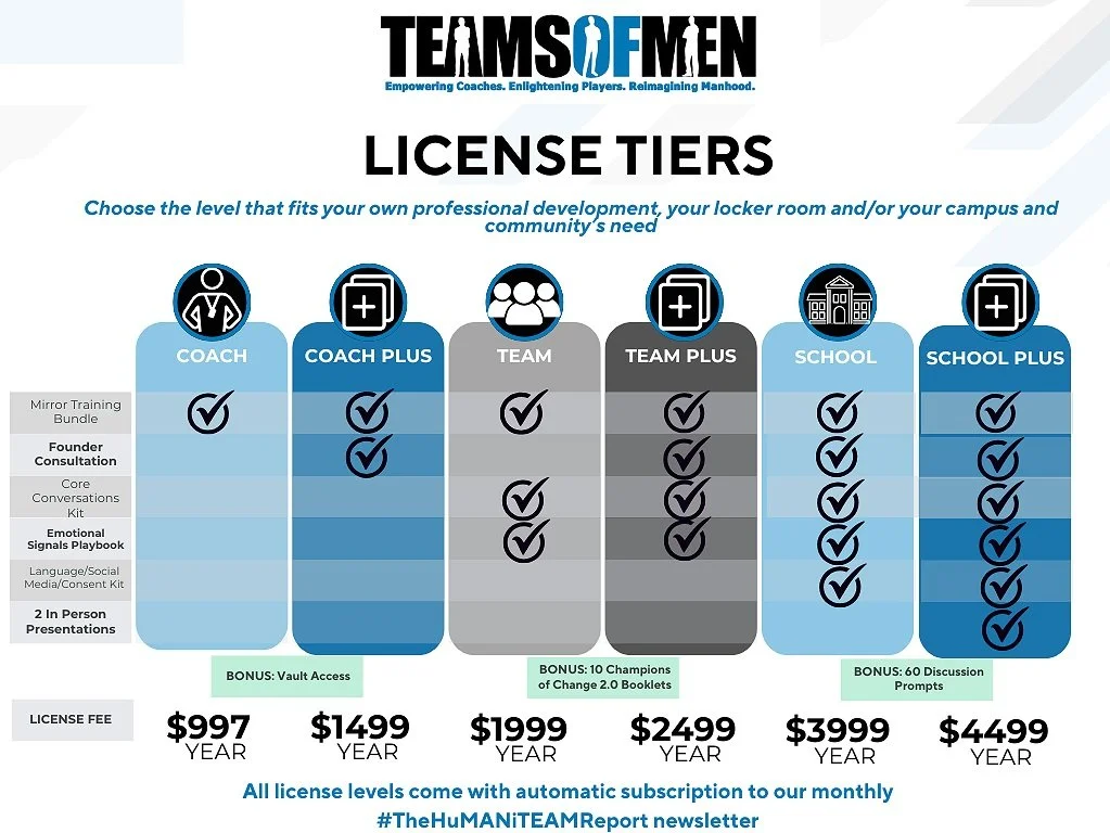 But this isn’t just about awards. I know some coaches are just dipping their toes into the water with us — and into the self-reflection work around their own masculinity. That first step takes courage, and I want to reward it. We have 11 designs, and I can almost guarantee one of them will speak to you. Grab it. Wear it to school. Wear it to the grocery store. Then wear it to practice. Someone’s going to ask you about it — and when they do, you’ll have to explain why it matters to you. That’s the launch point for raising your comfort level in having these conversations.